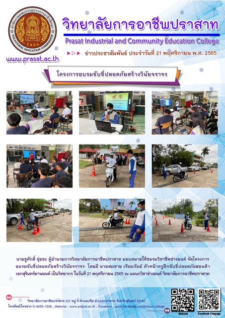 ข่าวประชาสัมพันธ์ภาพกิจกรรมภายในสถานศึกษา โครงการอบรมขับขี่ปลอดภัยสร้างวินัยจราจร 24/01/2023 Sasiprapa Maiprom 719 Views โครงการอบรมขับขี่ปลอดภัยสร้างวินัยจราจร นายชูศักดิ์ ขุ่ยขะ ผู้อำนวยการวิทยาลัยการอาชีพปราสาท มอบหมายให้ชมรมวิชาชีพช่างยนต์ จัดโครงการอบรมขับขี่ปลอดภัยสร้างวินัยจราจร โดยมี นายสมชาย เจียมรัมย์ หัวหน้าครูฝึกขับขี่ปลอดภัยฮอนด้าเอกสุรินทร์ยานยนต์ เป็นวิทยากร ในวันที่ 21 พฤศจิกายน 2565 ณ แผนกวิชาช่างยนต์ วิทยาลัยการอาชีพปราสาท อ่านเพิ่มเติมได้ที่…