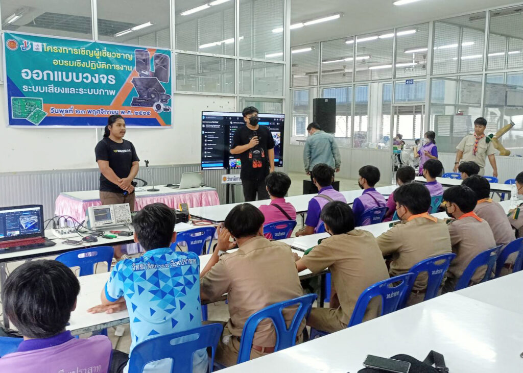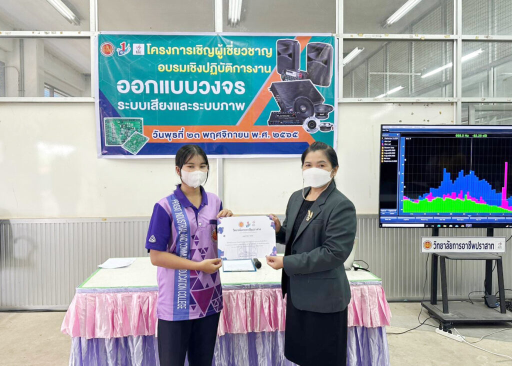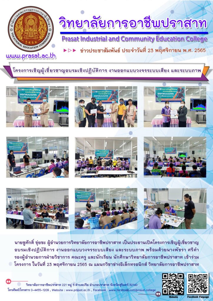 ข่าวประชาสัมพันธ์ภาพกิจกรรมภายในสถานศึกษา โครงการอบรมเชิงปฏิบัติการ งานออกแบบวงจรระบบเสียงและระบบภาพ 25/01/2023 Sasiprapa Maiprom 400 Views โครงการอบรมเชิงปฏิบัติการ งานออกแบบวงจรระบบเสียงและระบบภาพ นายชูศักดิ์ ขุ่ยขะ ผู้อำนวยการวิทยาลัยการอาชีพปราสาท เป็นประธานเปิดโครงการเชิญผู้เชี่ยวชาญอบรมเชิงปฏิบัติการ งานออกแบบวงจรระบบเสียง และระบบภาพ พร้อมด้วยนางพัชรา ศรีคำ รองผู้อำนวยการฝ่ายวิชาการ คณะครู และนักเรียน นักศึกษาวิทยาลัยการอาชีพปราสาท เข้าร่วมโครงการ ในวันที่ 23 พฤศจิกายน 2565 ณ แผนกวิชาช่างอิเล็กทรอนิกส์ วิทยาลัยการอาชีพปราสาท อ่านเพิ่มเติมได้ที่…