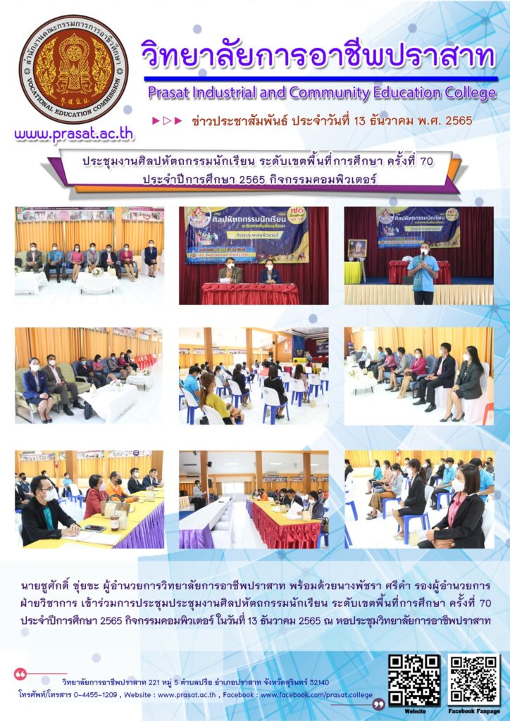 ข่าวประชาสัมพันธ์ภาพกิจกรรมร่วมกับชุมชน ประชุมงานศิลปหัตถกรรมนักเรียน ระดับเขตพื้นที่การศึกษา 31/01/2023 Sasiprapa Maiprom 651 Views ประชุมงานศิลปหัตถกรรมนักเรียน ระดับเขตพื้นที่การศึกษา นายชูศักดิ์ ขุ่ยขะ ผู้อำนวยการวิทยาลัยการอาชีพปราสาท พร้อมด้วยนางพัชรา ศรีคำ รองผู้อำนวยการฝ่ายวิชาการ เข้าร่วมการประชุมประชุมงานศิลปหัตถกรรมนักเรียน ระดับเขตพื้นที่การศึกษา ครั้งที่ 70 ประจำปีการศึกษา 2565 กิจกรรมคอมพิวเตอร์ ในวันที่ 13 ธันวาคม 2565 ณ หอประชุมวิทยาลัยการอาชีพปราสาท อ่านเพิ่มเติมได้ที่…