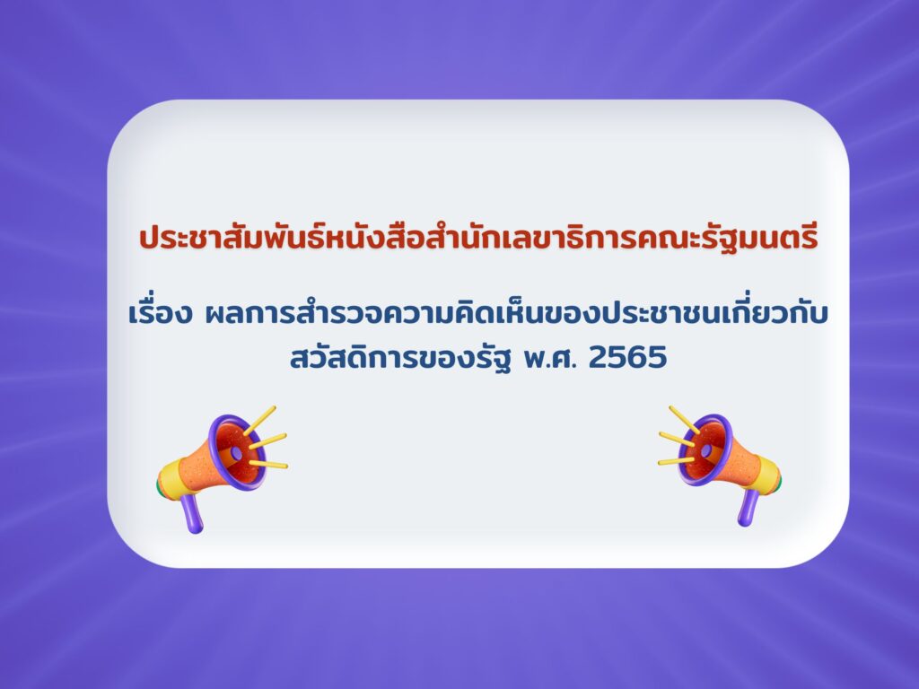 ข่าวประชาสัมพันธ์ ประชาสัมพันธ์หนังสือสำนักเลขาธิการคณะรัฐมนตรี 16/03/2023 Sasiprapa Maiprom 384 Views ประชาสัมพันธ์หนังสือสำนักเลเลขาธิการคณะรัฐมนตรี เรื่อง ผลการสำรวจความคิดเห็นของประชาชนเกี่ยวกับสวัสดิการของรัฐ