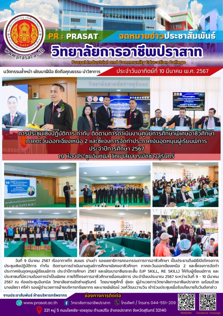 ข่าวประชาสัมพันธ์ภาพกิจกรรมร่วมกับชุมชน ประชุมติดตามการดำเนินงานศูนย์การศึกษา 2567 13/03/2024 Sasiprapa Maiprom 361 Views ประชุมติดตามการดำเนินงานศูนย์การศึกษา 2567 วันที่ 9 มีนาคม 2567 เรืออากาศโท สมพร ปานดำ รองเลขาธิการคณะกรรมการการอาชีวศึกษา เป็นประธานในพิธีเปิดโครงการประชุมเชิงปฏิบัติการ กำกับ ติดตามการดำเนินงานศูนย์การศึกษาพิเศษอาชีวศึกษา ภาคตะวันออกเฉียงเหนือ 2 และชี้แจงการจัดทำประกาศเงินอุดหนุนผู้เรียนพิการ ประจำปีการศึกษา 2567 และพัฒนาอาชีพระยะสั้น (UP SKILL, RE SKILL) ให้กับผู้เรียนพิการ และประชาชนที่มีความต้องการจำเป็นพิเศษ ภายใต้โครงการอาชีวศึกษาเพื่อคนพิการ ประจำปีงบประมาณ 2567 ระหว่างวันที่ 9 – 10 มีนาคม 2567 ณ ห้องประชุมอินทนิล วิทยาลัยสารพัดช่างสุรินทร์ โดยนายชูศักดิ์ ขุ่ยขะ ผู้อำนวยการวิทยาลัยการอาชีพปราสาท พร้อมด้วย นางพัชรา ศรีคำ รองผู้อำนวยการฝ่ายบริหารทรัพยากร และนายพิพัฒน์ วงศ์วัฒนวานวิน เข้าร่วมประชุมเพื่อรับนโยบายในวันดังกล่าว อ่านเพิ่มเติมได้ที่….