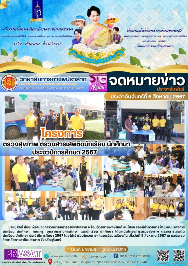 ภาพกิจกรรมภายในสถานศึกษา โครงการตรวจสุขภาพฯ นักเรียน นักศึกษา 2567 08/08/2024 Sasiprapa Maiprom 360 Views 0 Comments โครงการตรวจสุขภาพฯ นักเรียน นักศึกษา 2567 นายชูศักดิ์ ขุ่ยขะ ผู้อำนวยการวิทยาลัยการอาชีพปราสาท พร้อมด้วยนายพงษ์ศักดิ์ สนโศรก รองผู้อำนวยการฝ่ายพัฒนากิจการนักเรียน นักศึกษา, คณะครู, บุคลากรทางการศึกษา และนักเรียน นักศึกษา ได้ดำเนินโครงการตรวจสุขภาพ ตรวจสารเสพติด นักเรียน นักศึกษา ประจำปีการศึกษา 2567 โดยได้เข้าร่วมโครงการฯ โดยพร้อมเพรียงกัน เมื่อวันที่ 5 สิงหาคม 2567 ณ หอประชุมวิทยาลัยการอาชีพปราสาท จังหวัดสุรินทร์