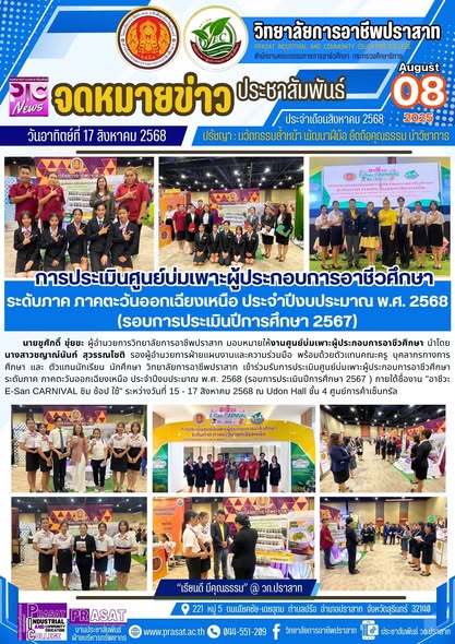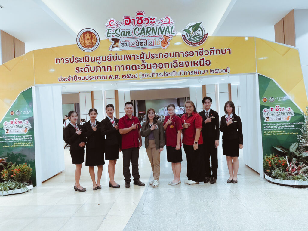 ภาพกิจกรรมร่วมกับชุมชน การประเมินศูนย์บ่มเพาะฯ ระดับ ภาคตะวันออกเฉียงเหนือ 2568การประเมินศูนย์บ่มเพาะผู้ประกอบการอาชีวศึกษา ระดับภาค ภาคตะวันออกเฉียงเหนือ ประจำปีงบประมาณ พ.ศ. 2568 (รอบการประเมินปีการศึกษา 2567 ) 11/09/2025 Sasiprapa Maiprom 47 Views 0 Comments การประเมินศูนย์บ่มเพาะผู้ประกอบการอาชีวศึกษา ระดับภาค ภาคตะวันออกเฉียงเหนือ ประจำปีงบประมาณ พ.ศ. 2568 (รอบการประเมินปีการศึกษา 2567 ) นายชูศักดิ์ ขุ่ยขะ ผู้อำนวยการวิทยาลัยการอาชีพปราสาท มอบหมายให้งานศูนย์บ่มเพาะผู้ประกอบการอาชีวศึกษา นำโดยนางสาวชญาณ์นันท์ สุวรรณโชติ รองผู้อำนวยการฝ่ายแผนงานและความร่วมมือ พร้อมด้วยตัวแทนคณะครู บุคลากรทางการศึกษา และ ตัวแทนนักเรียน นักศึกษา วิทยาลัยการอาชีพปราสาท เข้าร่วมรับการประเมินศูนย์บ่มเพาะผู้ประกอบการอาชีวศึกษา ระดับภาค ภาคตะวันออกเฉียงเหนือ ประจำปีงบประมาณ พ.ศ. 2568 (รอบการประเมินปีการศึกษา 2567 ) ภายใต้ชื่องาน “อาชีวะ E-San CARNIVAL ชิม ช้อป ใช้” ระหว่างวันที่ 15 – 17 สิงหาคม 2568 ณ Udon Hall ชั้น 4 ศูนย์การค้าเซ็นทรัล จังหวัดอุดรธานี